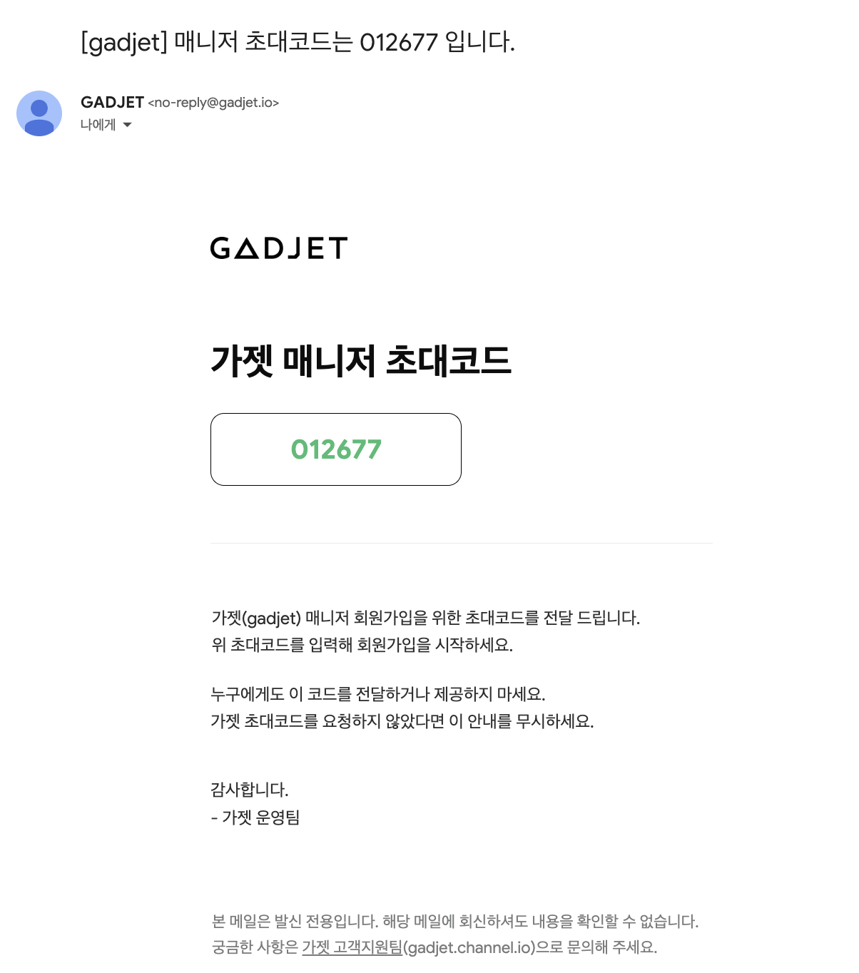 GADJET 인증 코드와 초대코드 메일을 받고 굉장히 '심플'한 디자인이라서 새삼 놀라웠던