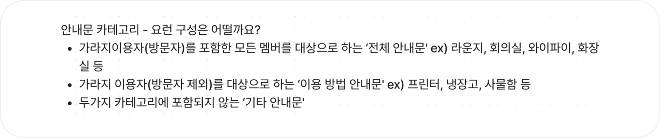 알려드렸습니다. 안내문 카테고리를 어떻게 나눌지 기준에 대한 고민이 있었는데요.